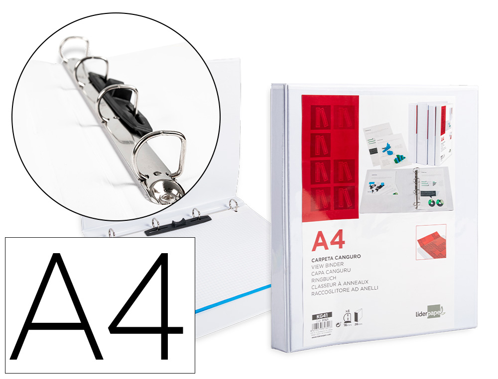 La carpeta Canguro de 4 anillas mixtas de Liderpapel en color blanco es la solución ideal para mantener tus documentos organizados de manera profesional y eficiente. Su diseño robusto y funcionalidad versátil la hacen perfecta tanto para entornos escolares como empresariales. Con su capacidad para personalizar la portada y su construcción en materiales de alta calidad, esta carpeta se convierte en una herramienta indispensable.